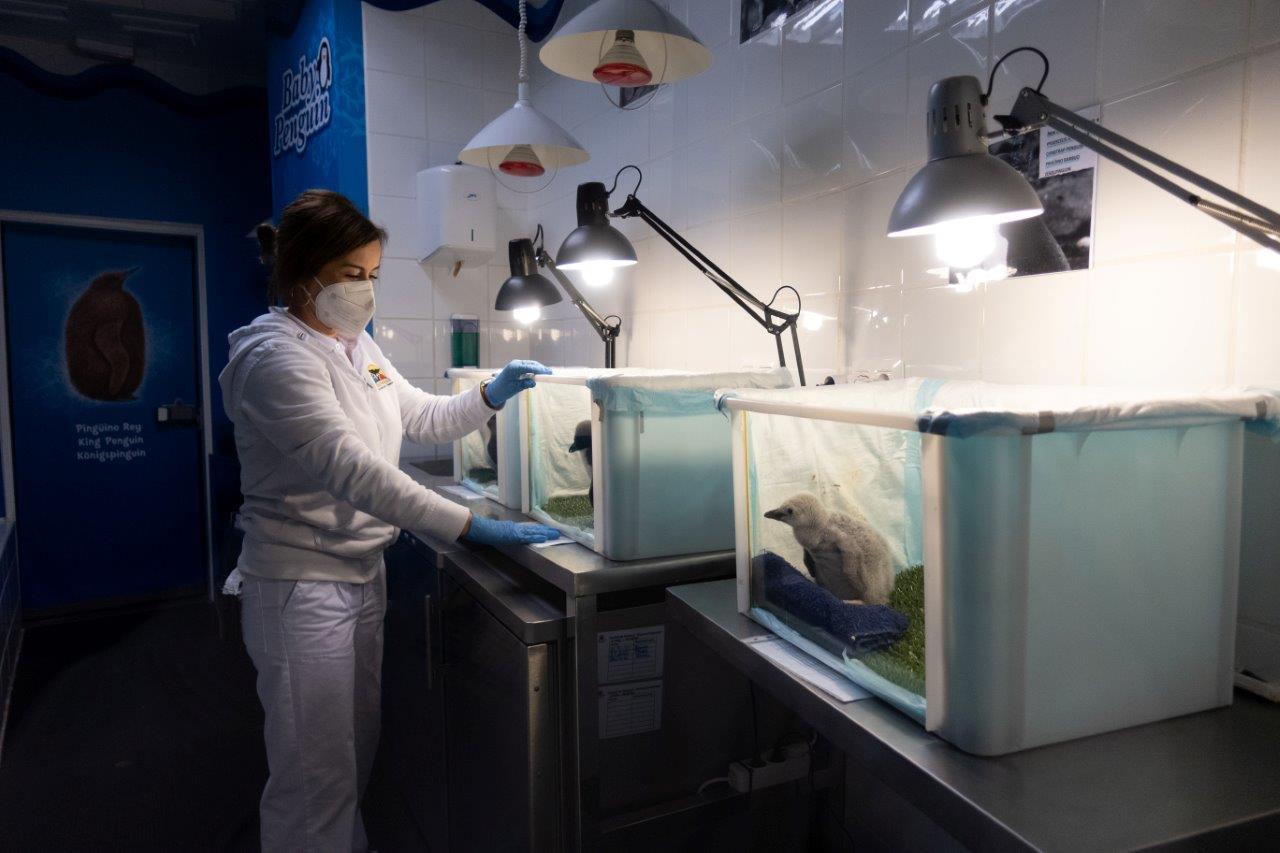 Después de la primera etapa de incubación artificial de las crías, la temperatura de los pingüinos bebés disminuirá gradualmente. Así comienza su fase de socialización, durante la cual se van familiarizando poco a poco con el entorno hasta su total integración en el grupo.