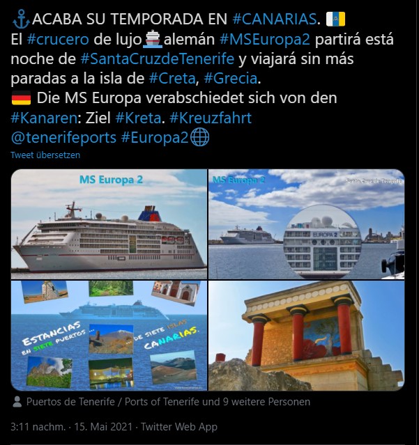 Da waren es nur noch DREI: MS Europa 2 nicht mehr unterwegs auf den Kanaren.