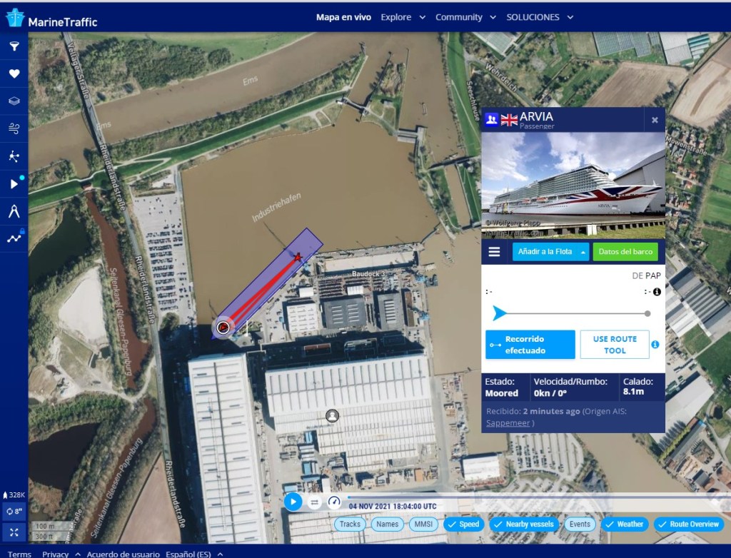ACTUAL: Completado – MEYER WERFT transfiere el crucero Arvia a Eemshaven en Paises Bajos.