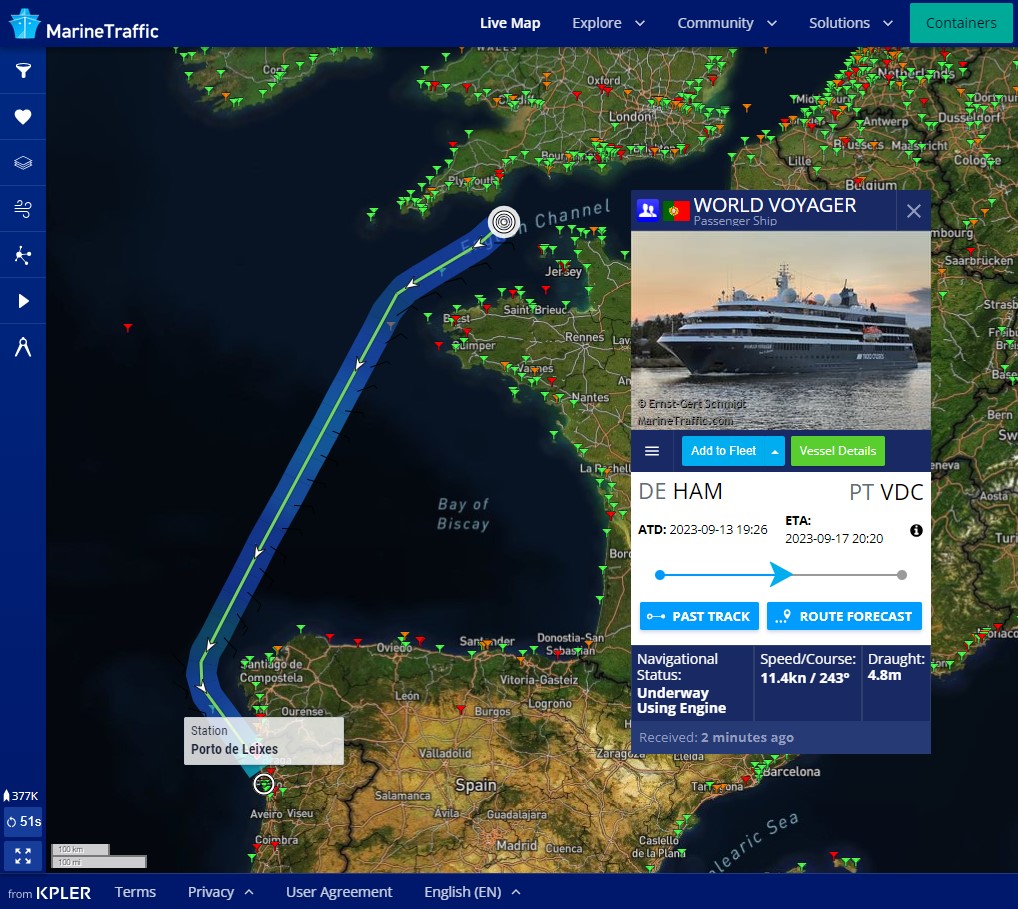Vorgestern, am 13.09.2023, lief das kleine Kreuzfahrtschiff World Voyager unter Nicko Cruises zum letzten Mal vom Cruise Center Baakenhöft des Hamburger Hafens aus. Es beginnt eine Zeit, die sich nicht mehr an zahlungskräftigen Kunden aus der Mitte Europas orientieren wird, sondern seine Wege werden zwischen Antarktis und dem Norden Amerikas – dort, wo das Geld sitzt – zu beschreiten sein.