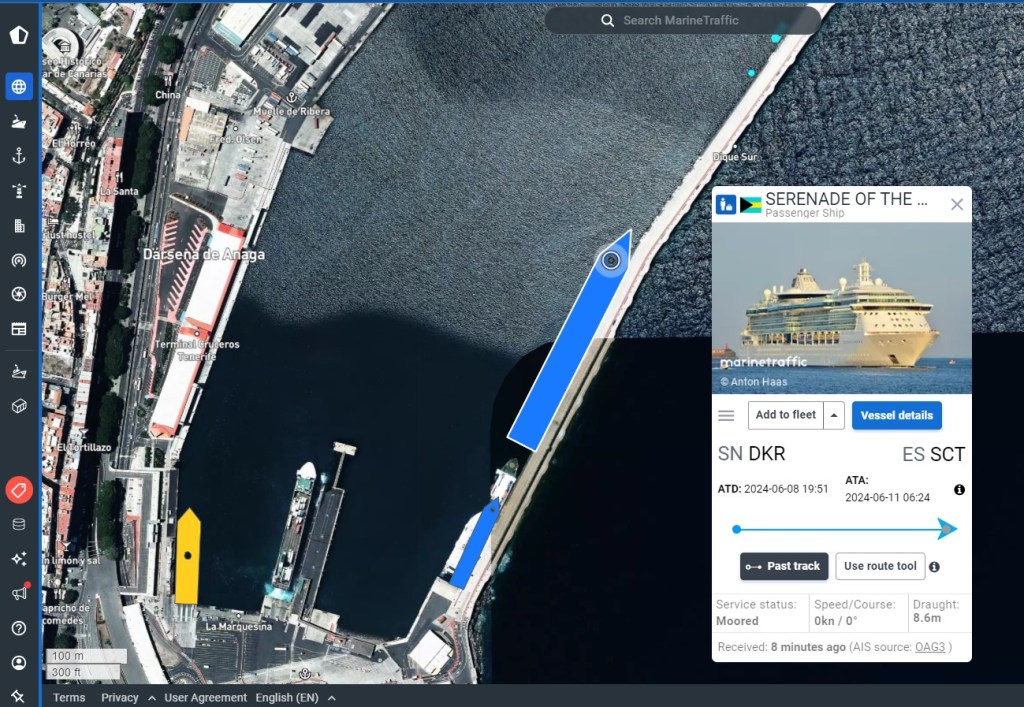 Nun ist die Serenade of the Seas nach einer interessanten Reise am heutigen Tag – ganz zufällig – bei uns in Santa Cruz de Tenerife angekommen.
