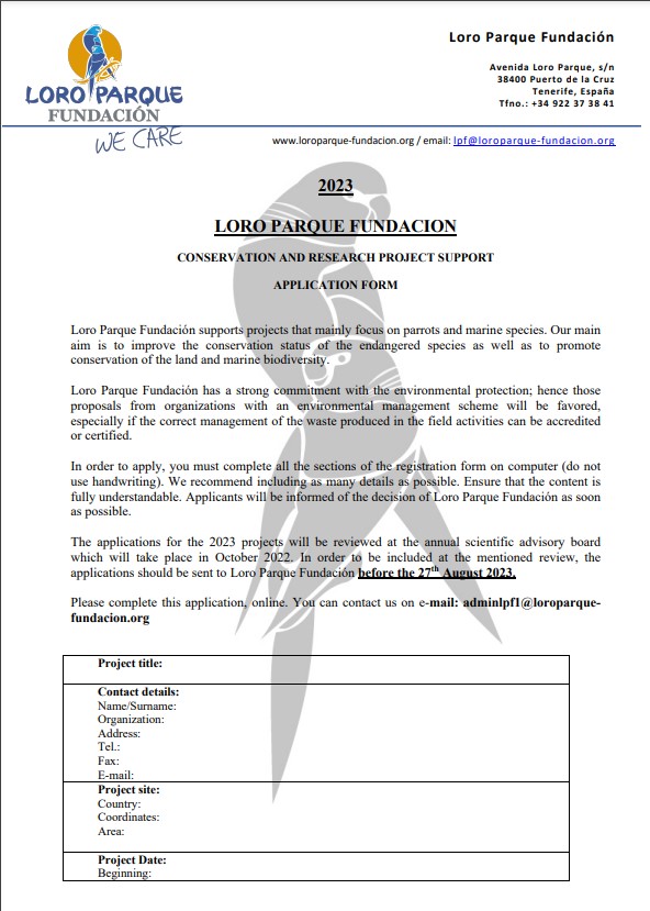 Die Stiftung Loro Parque Fundación sucht nach Vorschlägen für Naturschutz- und Forschungsprojekte, die mit der Mission, Vision und den Zielen der Organisation übereinstimmen.