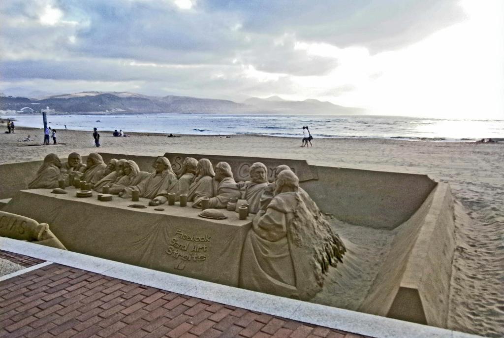 Auch in diesem Jahr entstehen in diesen Tagen zum Anfang des Weihnachtsmonats Dezember die dreidimensionalen Krippenbild-Installationen aus dem Sand der beliebten Playa de Las Canteras, dem ausgedehnten Strand an der Westküste von Las Palmas.