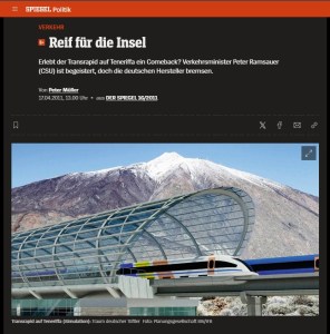 Wir hatten das schon mal vor vielen, vielen Jahren. Eine zukunftsorientierte Inselregierung, fasziniert vom deutschen „Transrapid“ und hoch motiviert durch die zustimmende Anbiederei deutscher Geschäftsleute und Politiker, war ernsthaft dabei, tolle Vorstellungen von einer deutschen Magnetschwebebahn auf der Kanareninsel umsetzen zu wollen. Wir schrieben das Jahr Elf nach der Jahrtausendwende, also 2011.