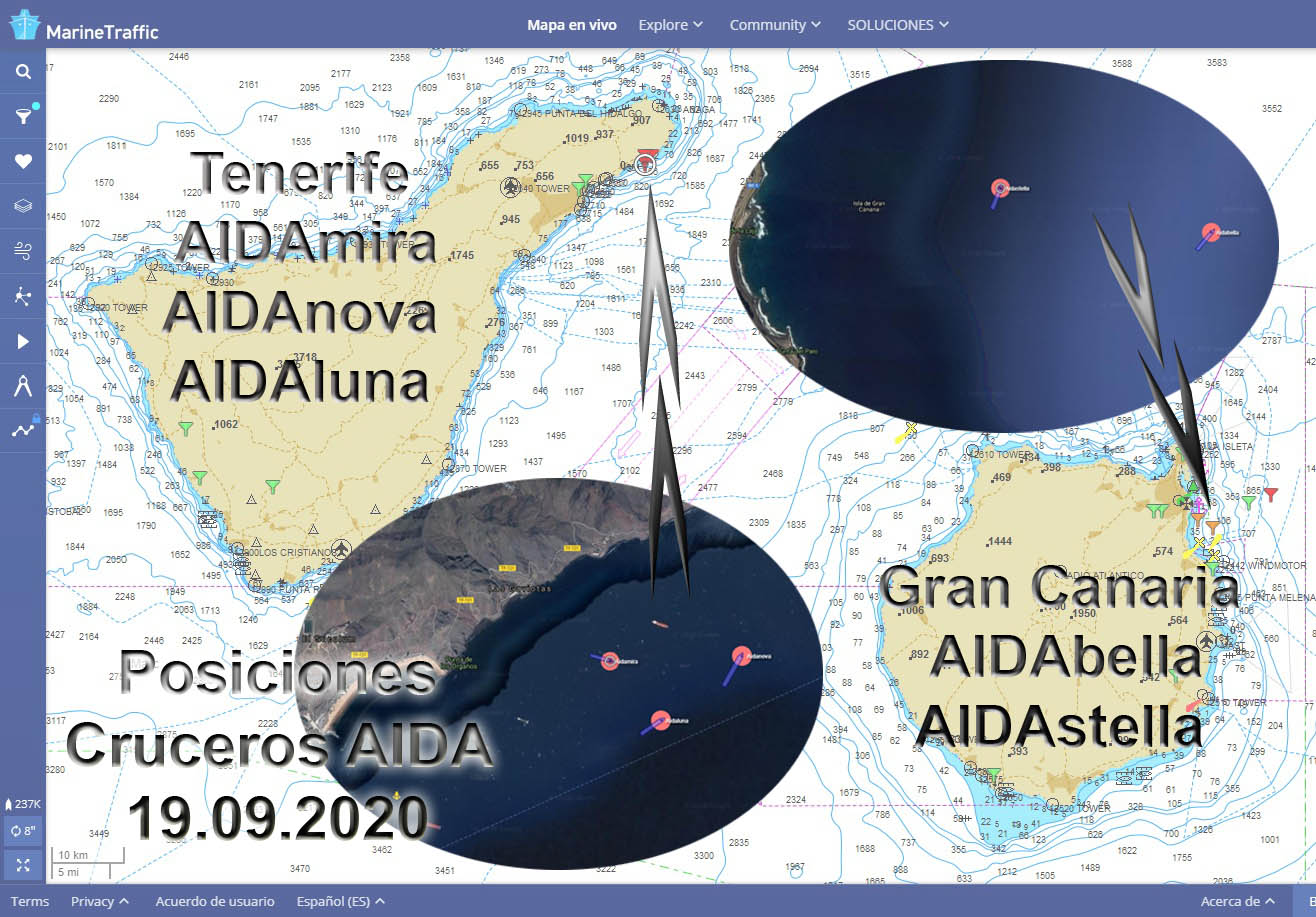 A continuación ofrecemos extractos de mapas individuales de todos los destinos de cruceros importantes para una OBSERVACIÓN INMEDIATA sin ningún conocimiento adicional sobre el manejo de MarineTraffic.