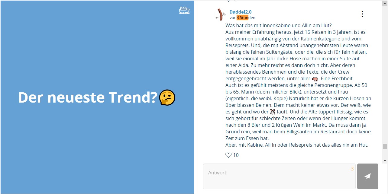 Posted 09/12/2023 frage-achwasachwas-der-neueste-trend-daddel-gezeter-support-gemeldet Gefällt mir Wird geladen … ‹ Return to post Previous Image Next Image