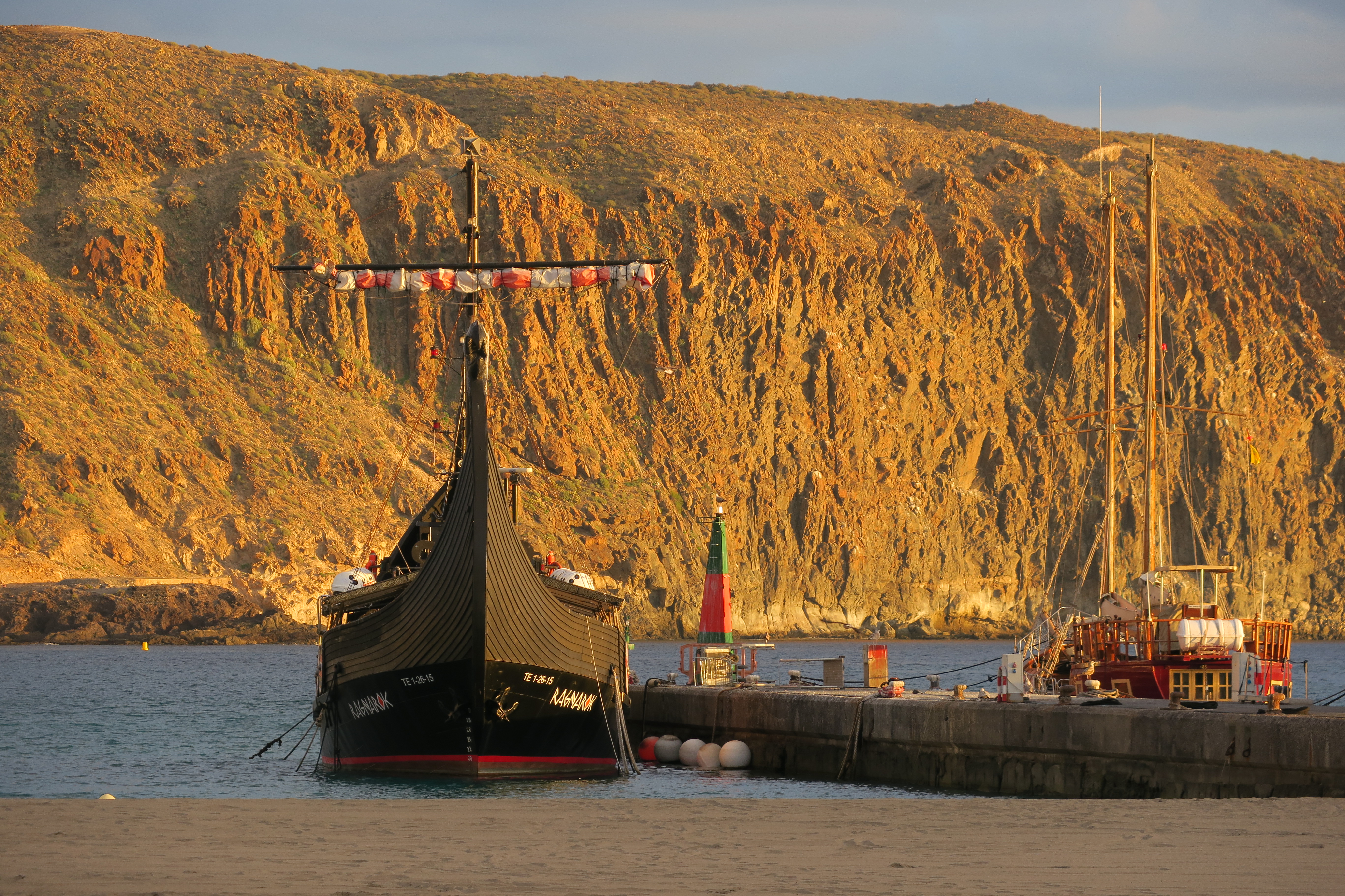 - Los Cristianos en Tenerife, los barcos están en su mayoría en la zona de fondeo